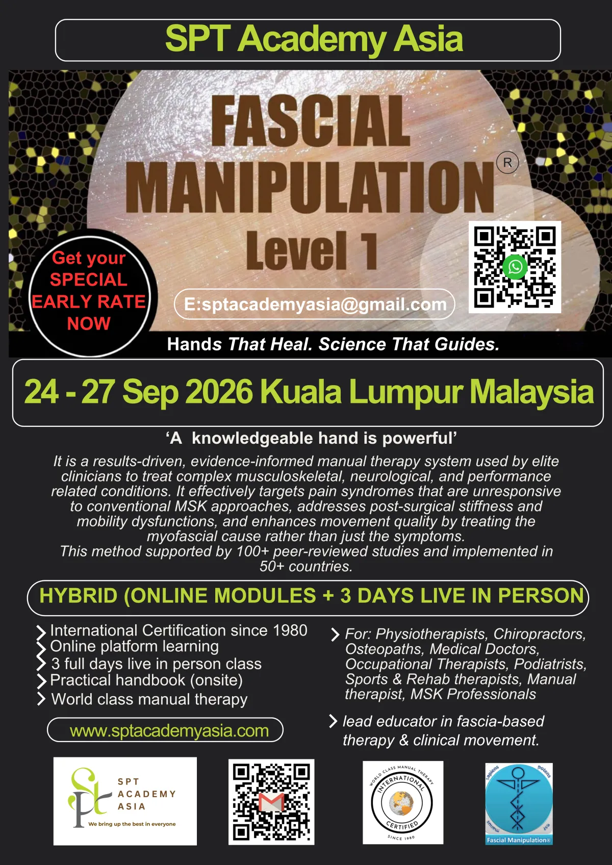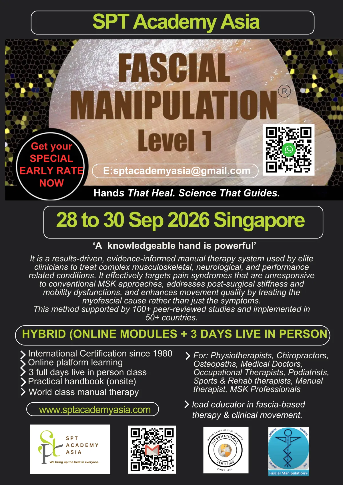 SPT Academy Asia with other Fascia experts and teachers has empowered tens of thousands of physiotherapists, chiropractors, osteopaths, occupational therapists, and multidisciplinary practitioners across Asia and beyond through fascia-based education that blends cutting-edge science with real-world clinical application.